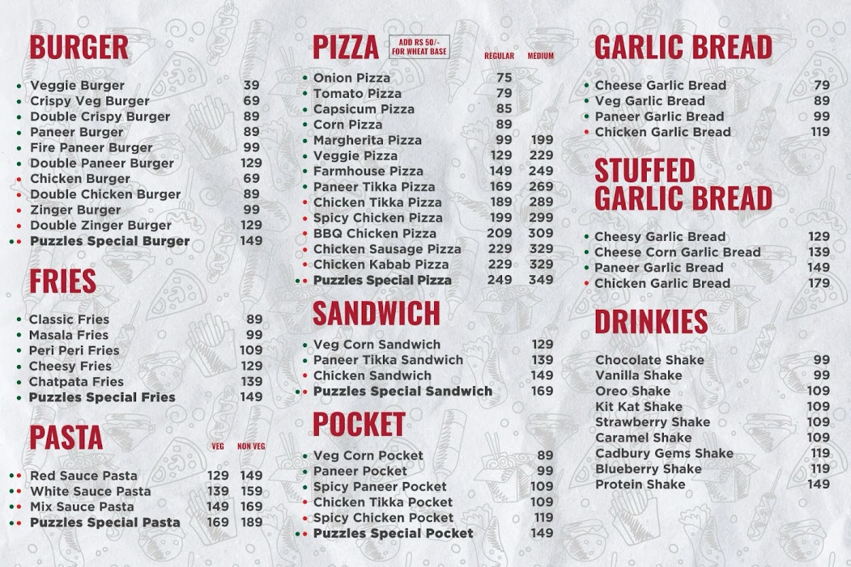 - Sandwiches: Savor their Veg Corn Sandwich for just ₹129, or indulge in the decadent Puzzles Special Sandwich at ₹169.
